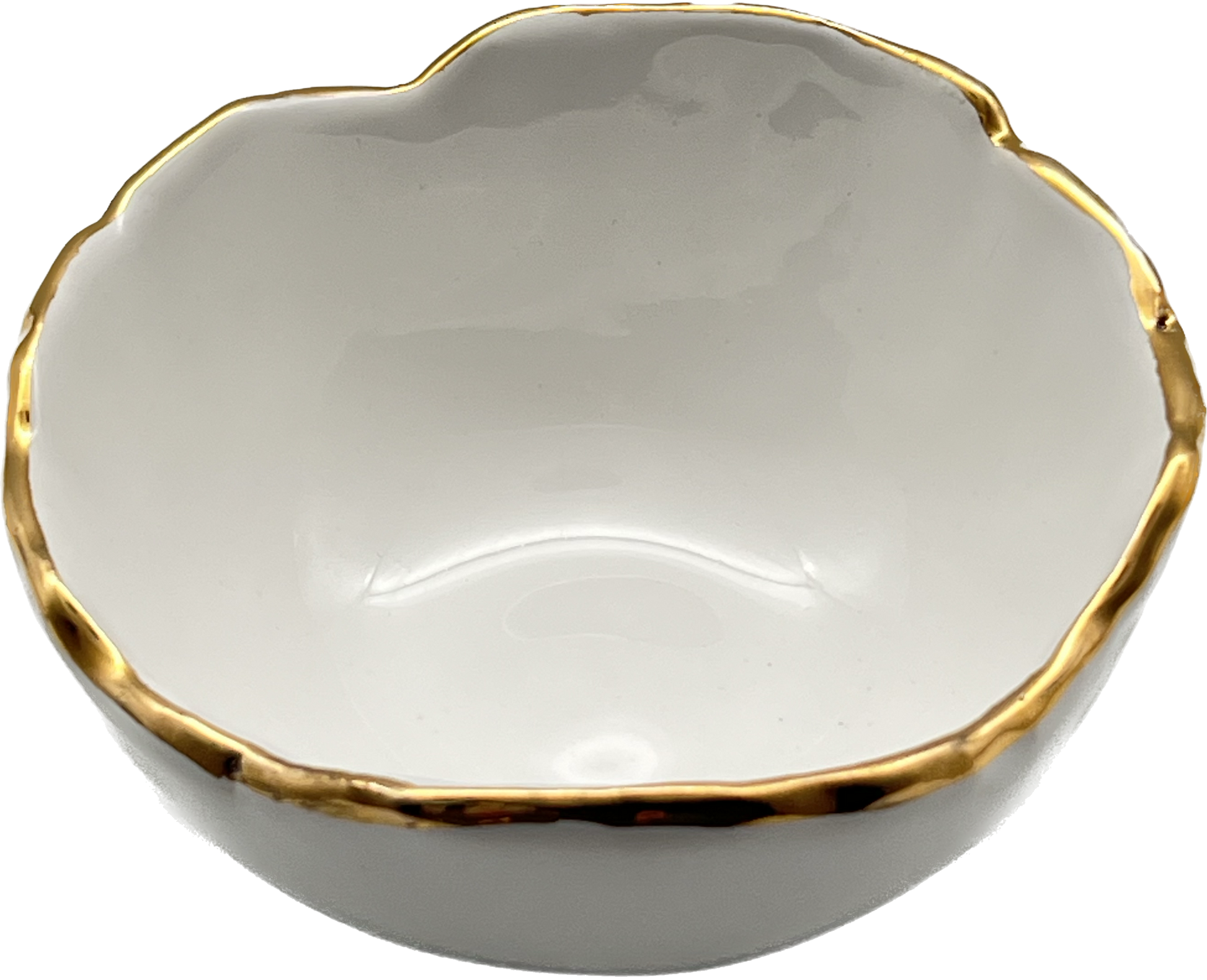 Small gold rimmed ceramic bowl in white, D 12 cm